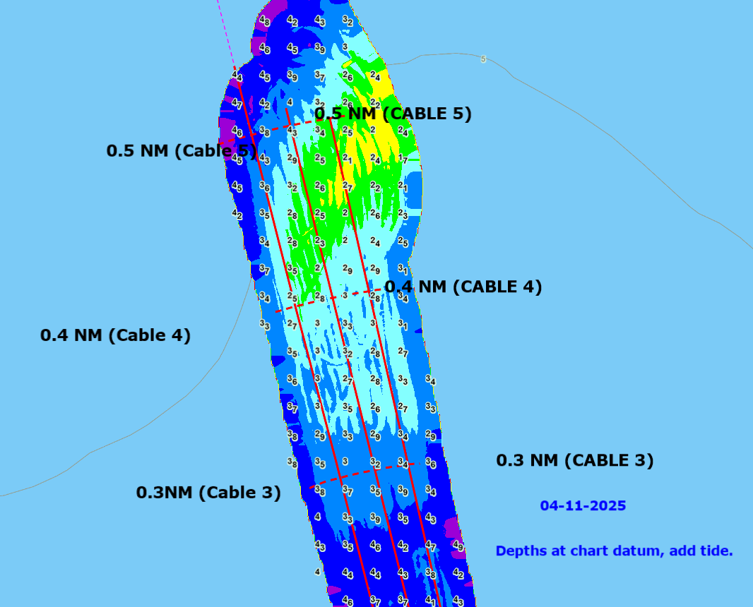 Sometimes you can have different sets, e.g. a westerly set at 5 cables and then an easterly set close in, check out the Easterly Set Diagram.